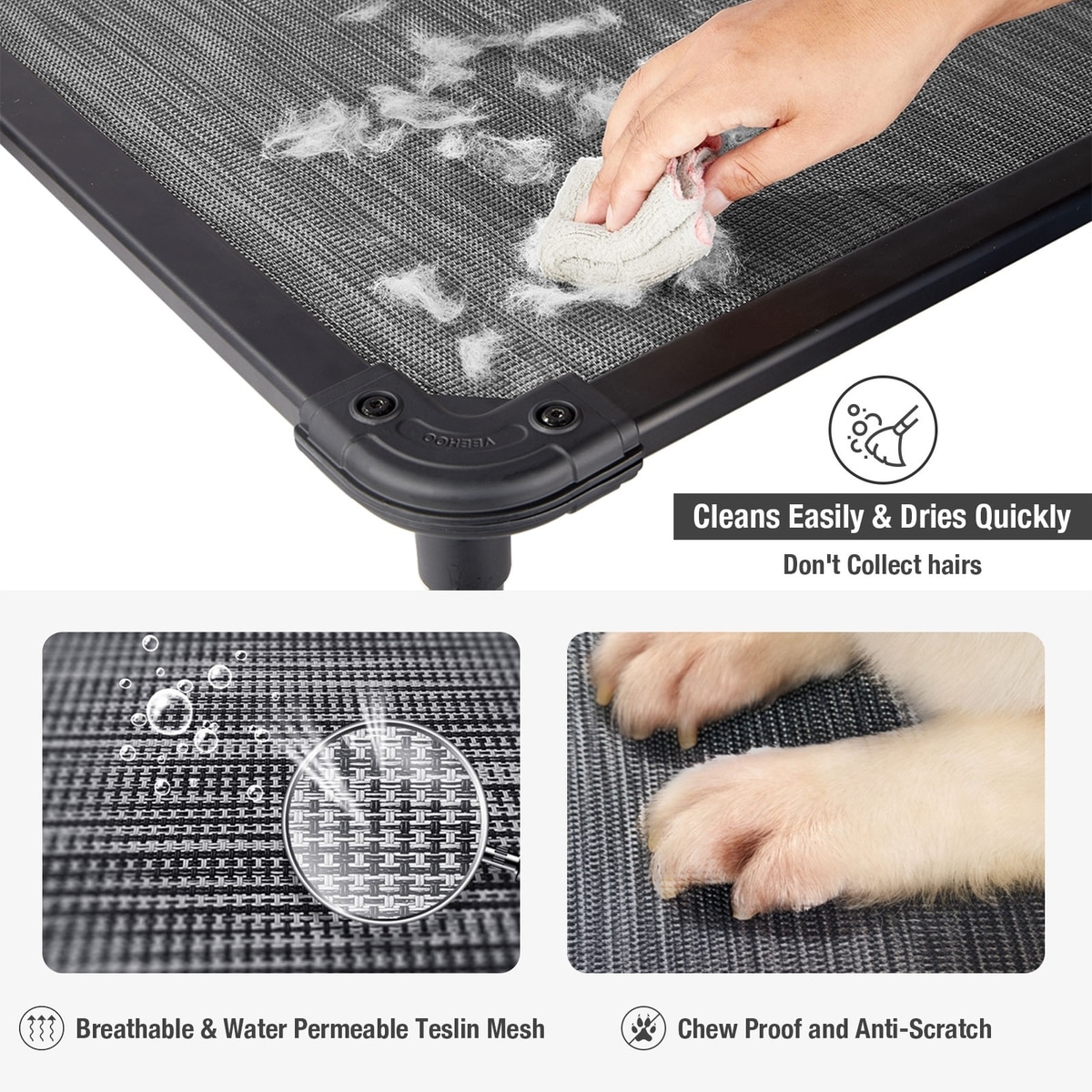 The dog bed mat is suitable for both hand and machine washing, making routine care simple. The mesh frame can be easily wiped clean or rinsed for quick maintenance.