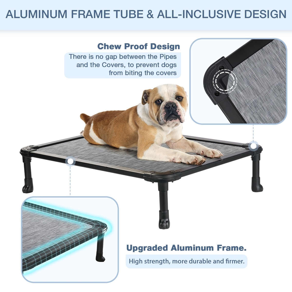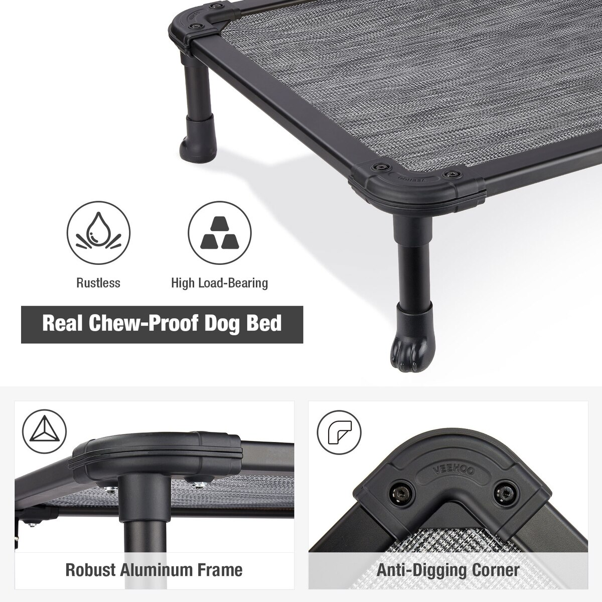 Veehoo Chew-Proof Rustless Aluminum Frame Elevated Dog Bed, Black Silver, Medium