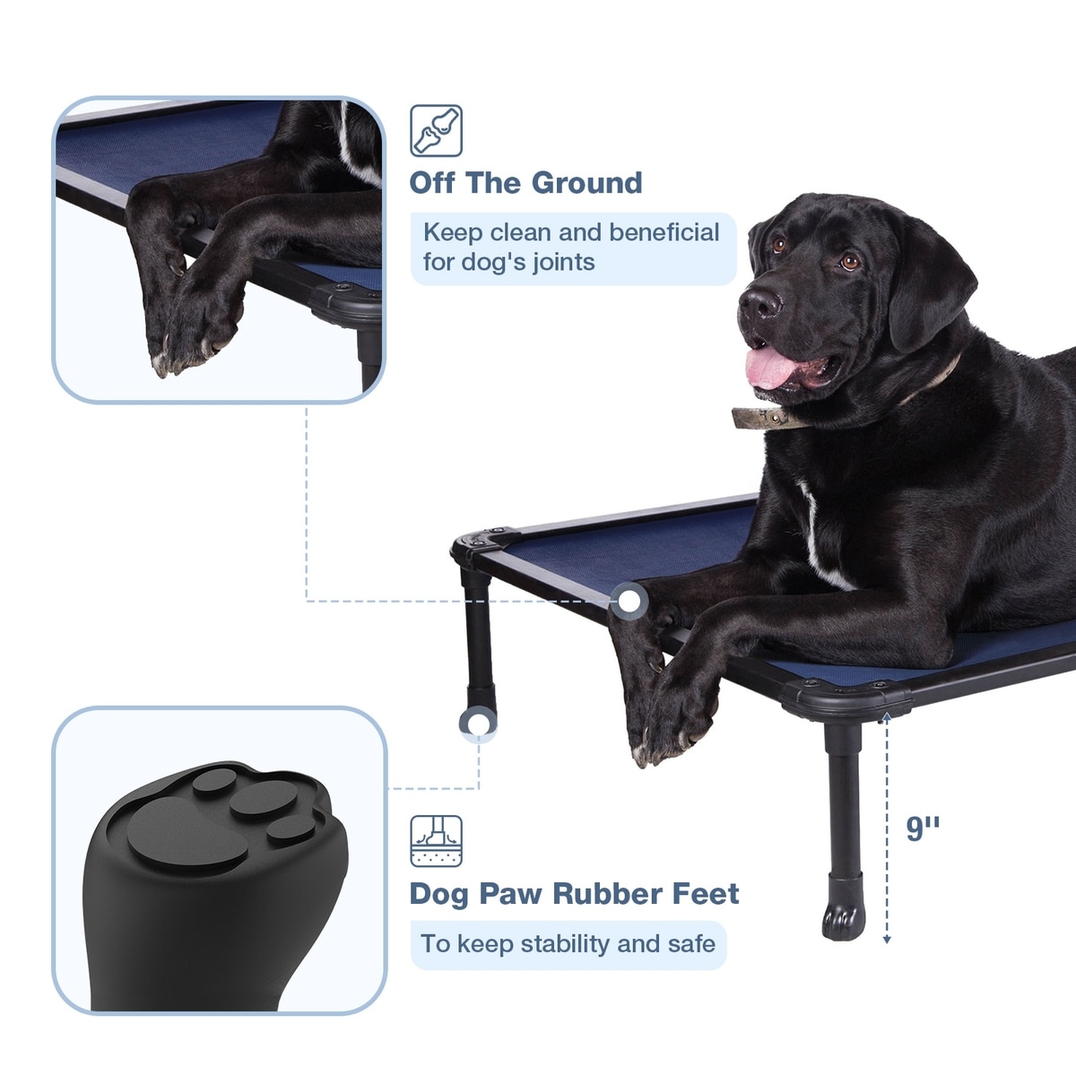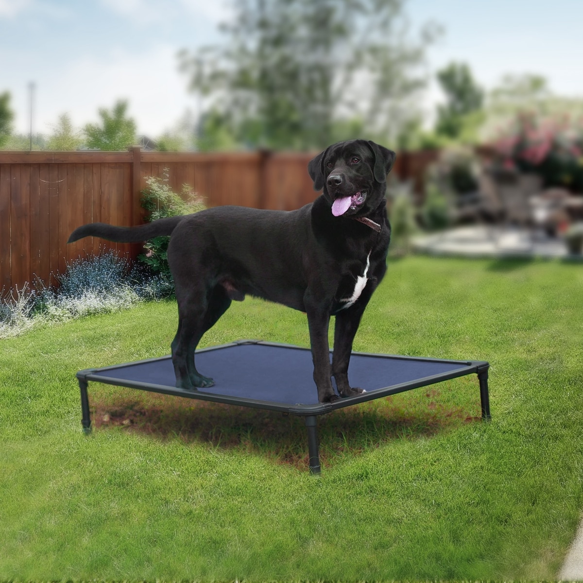 The raised design keeps pets off wet, hard, or dirty floors while delivering comfortable support throughout the year. Joint comfort is enhanced, and the breathable Teslin mesh center promotes airflow to help keep pets cool during warmer months.