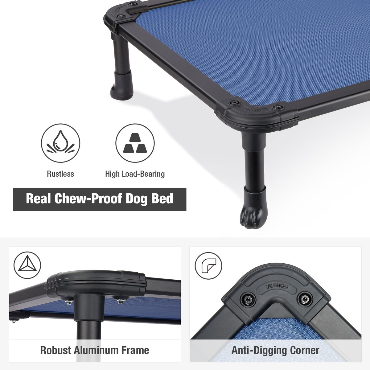 Veehoo Chew-Proof Rustless Aluminum Frame Elevated Dog Bed, Blue, Large