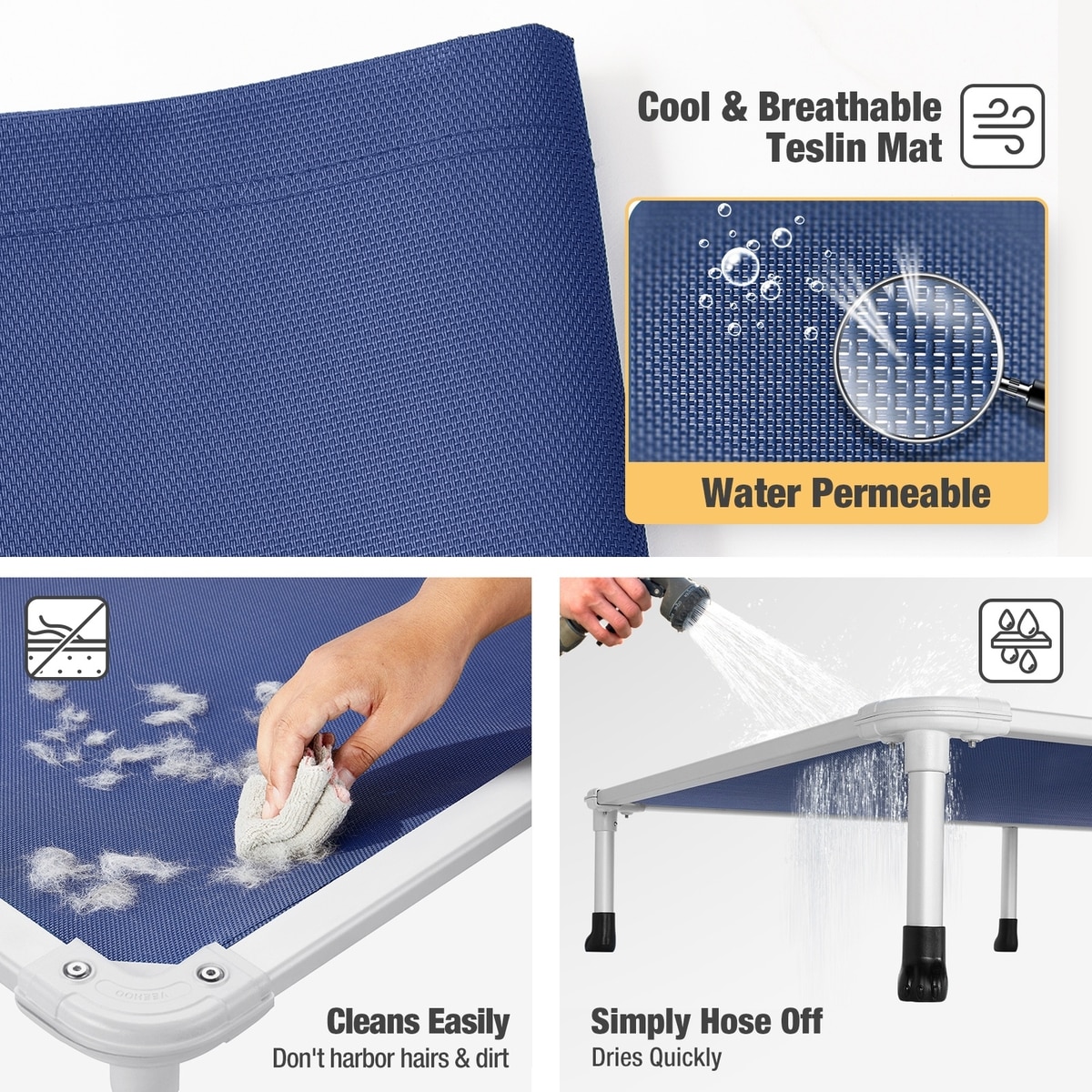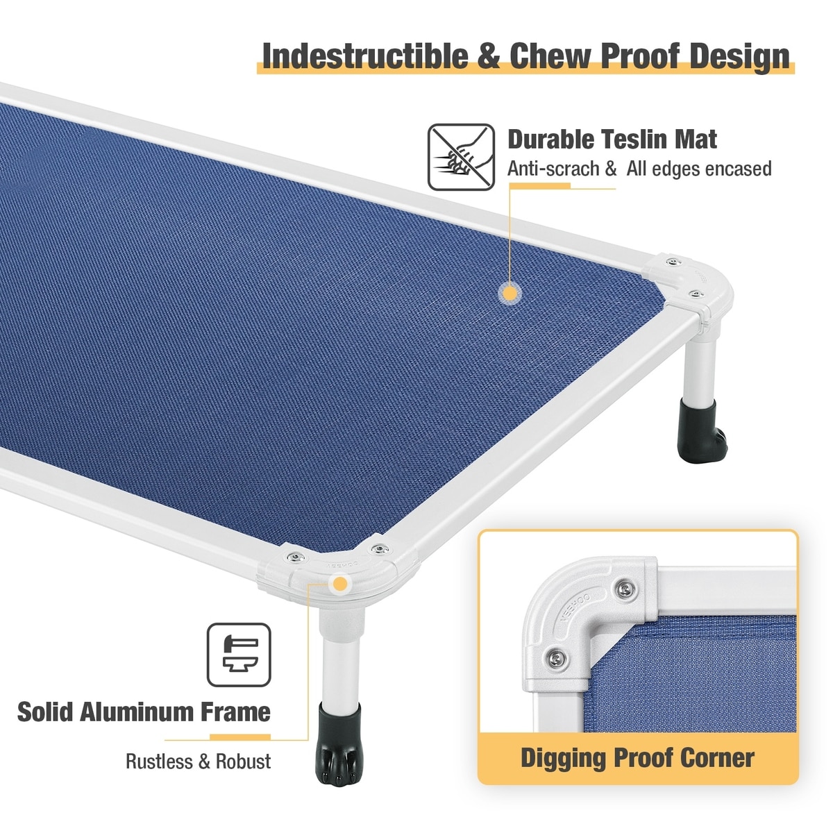 Veehoo Chew-Proof Silver Aluminum Frame Elevated Dog Bed, Blue, Large