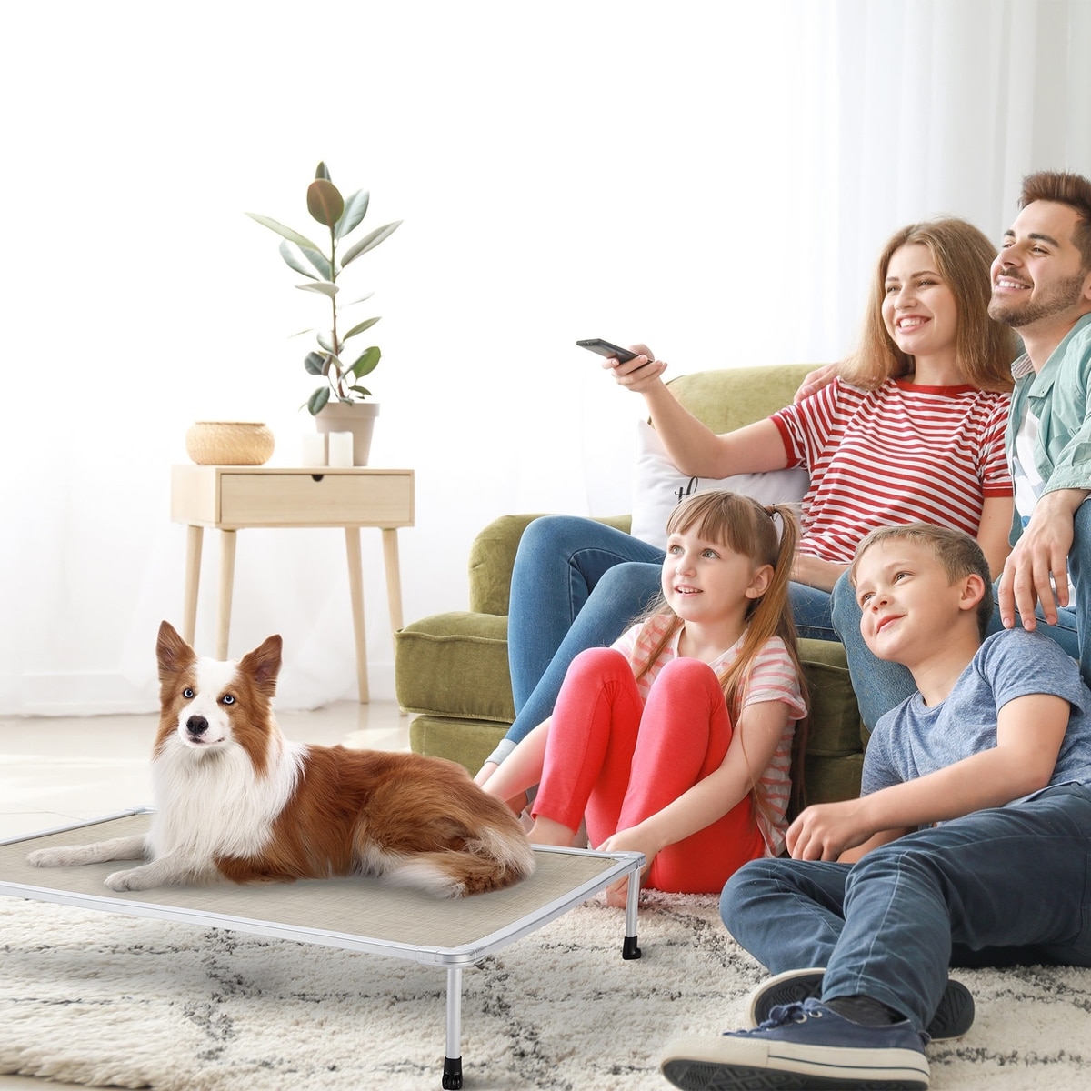 The raised design keeps pets off wet, hard, or dirty floors while delivering comfortable support throughout the year. Joint comfort is enhanced, and the breathable Teslin mesh center promotes airflow to help keep pets cool during warmer months.