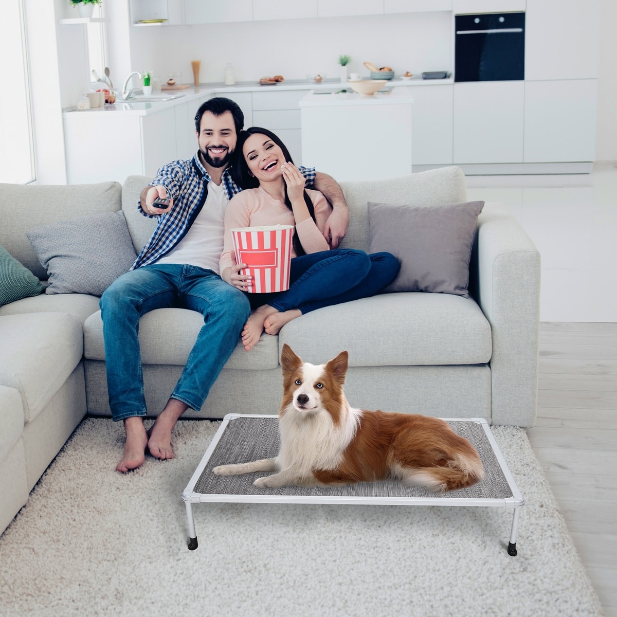 The raised design keeps pets off wet, hard, or dirty floors while delivering comfortable support throughout the year. Joint comfort is enhanced, and the breathable Teslin mesh center promotes airflow to help keep pets cool during warmer months.