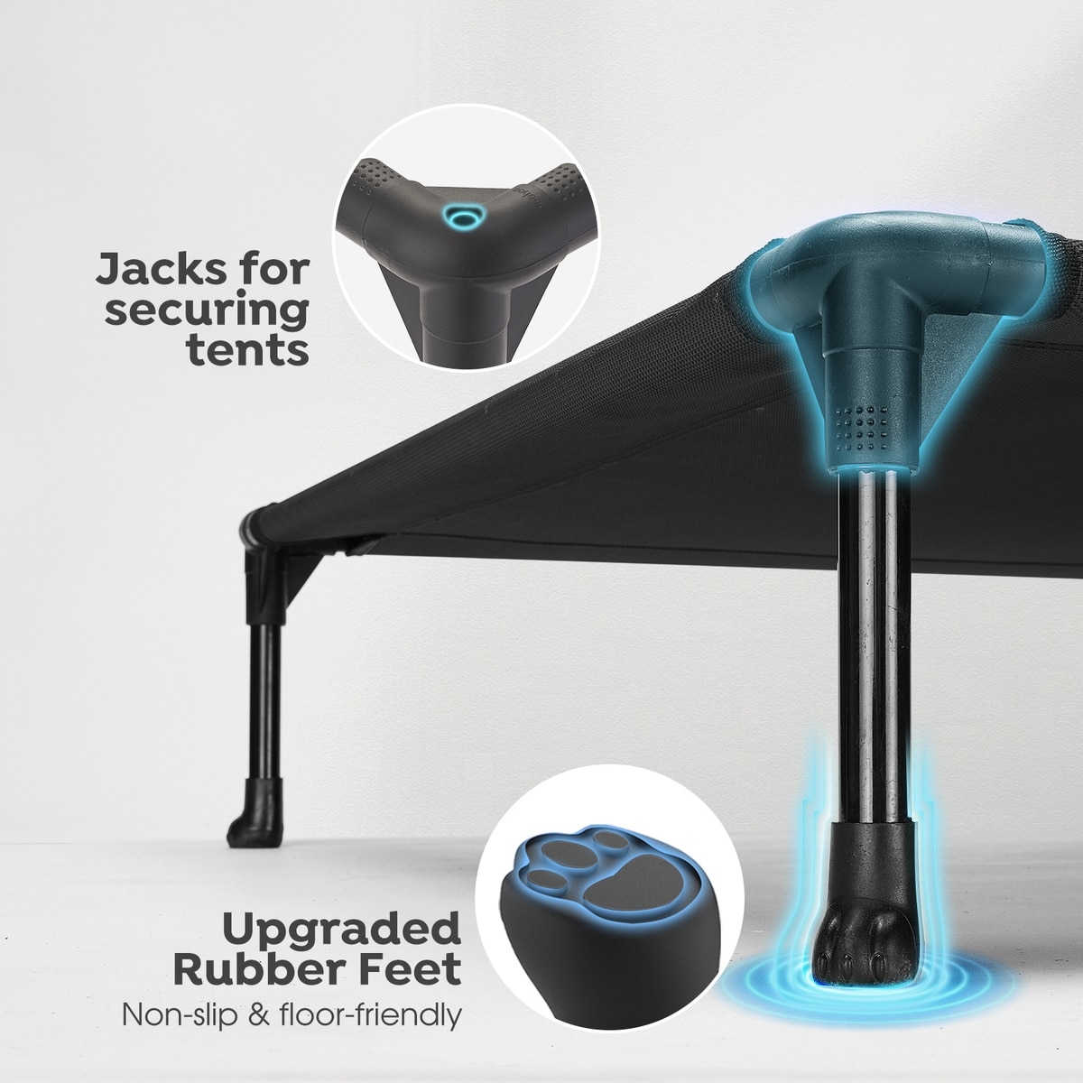 Quick & Easy Assemble: No screws and wrenches needed. With our unique pipe connection design, the outdoor dog bed can be directly installed by using the plug-in. Lightweight and portable. Our elevated dog bed is perfect for indoor, outdoor, picnic, camping, training, fishing. Quality sleep on the go.
