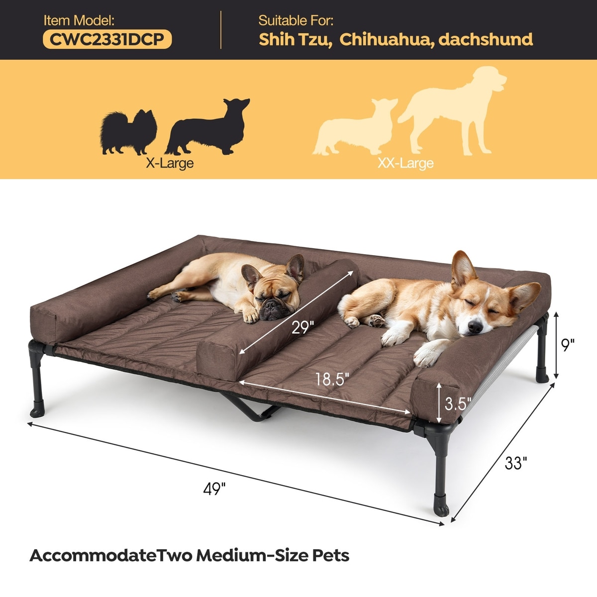 The raised design allows your pets to stay away from wet, hard, and dirty floors, providing relief for their joints, while breathable mesh allows a cooling breeze to flow through the bed.
