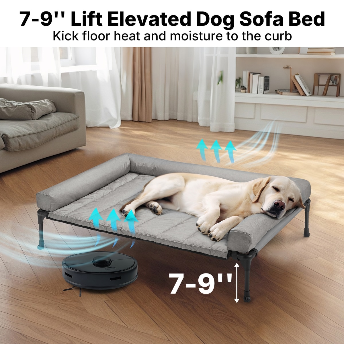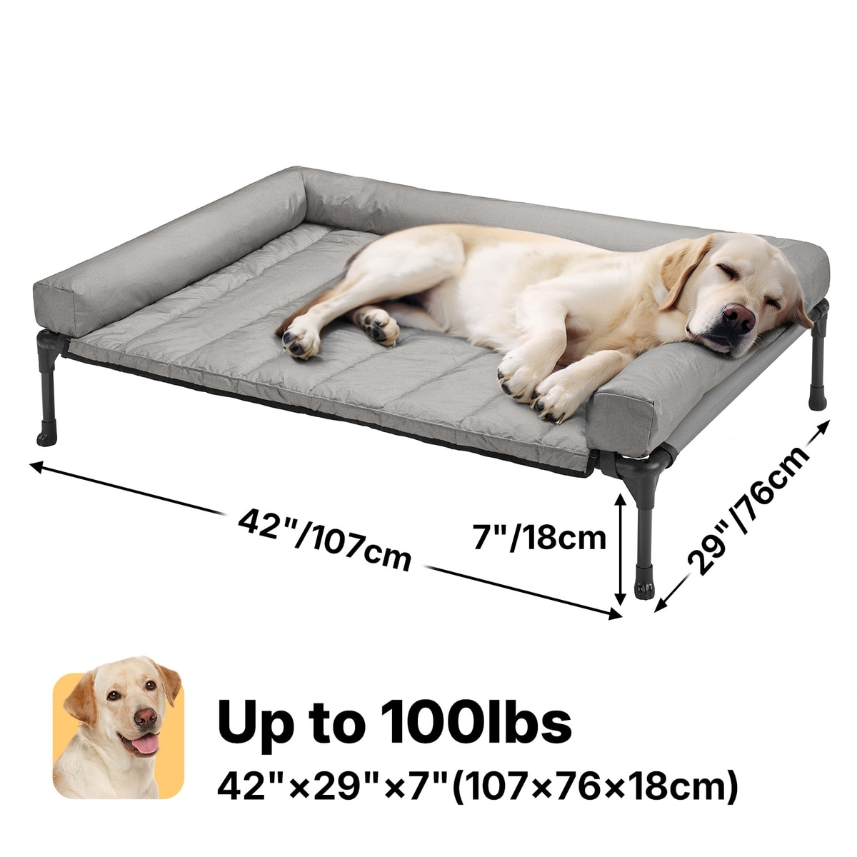 Veehoo Elevated Dog Bed with Bolster Mat, Sky Grey, Large
