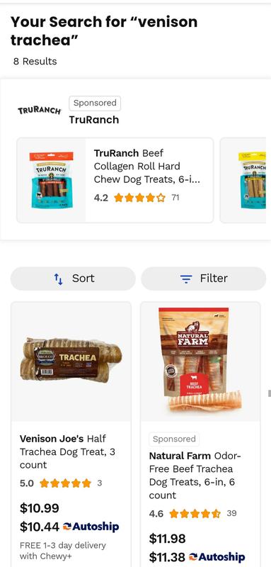 Venison Joe's Half Trachea Dog Treat, 3 count