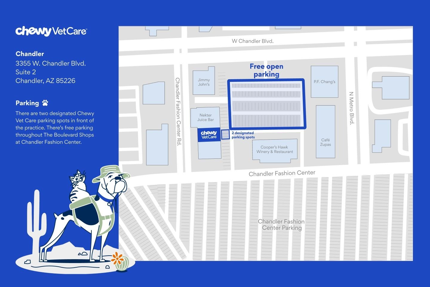 Chewy Vet Care is a veterinary practice that offers a wide array of services, from routine wellness care to urgent care and surgeries. Our passionate, friendly care team provides the highest-quality medical care, backed by Chewy’s award-winning customer service. The entire Chewy Vet Care experience is designed to help you and your pet feel at ease, with thoughtfully designed spaces and advanced technology that puts scheduling and your pet’s medical records right at your fingertips.