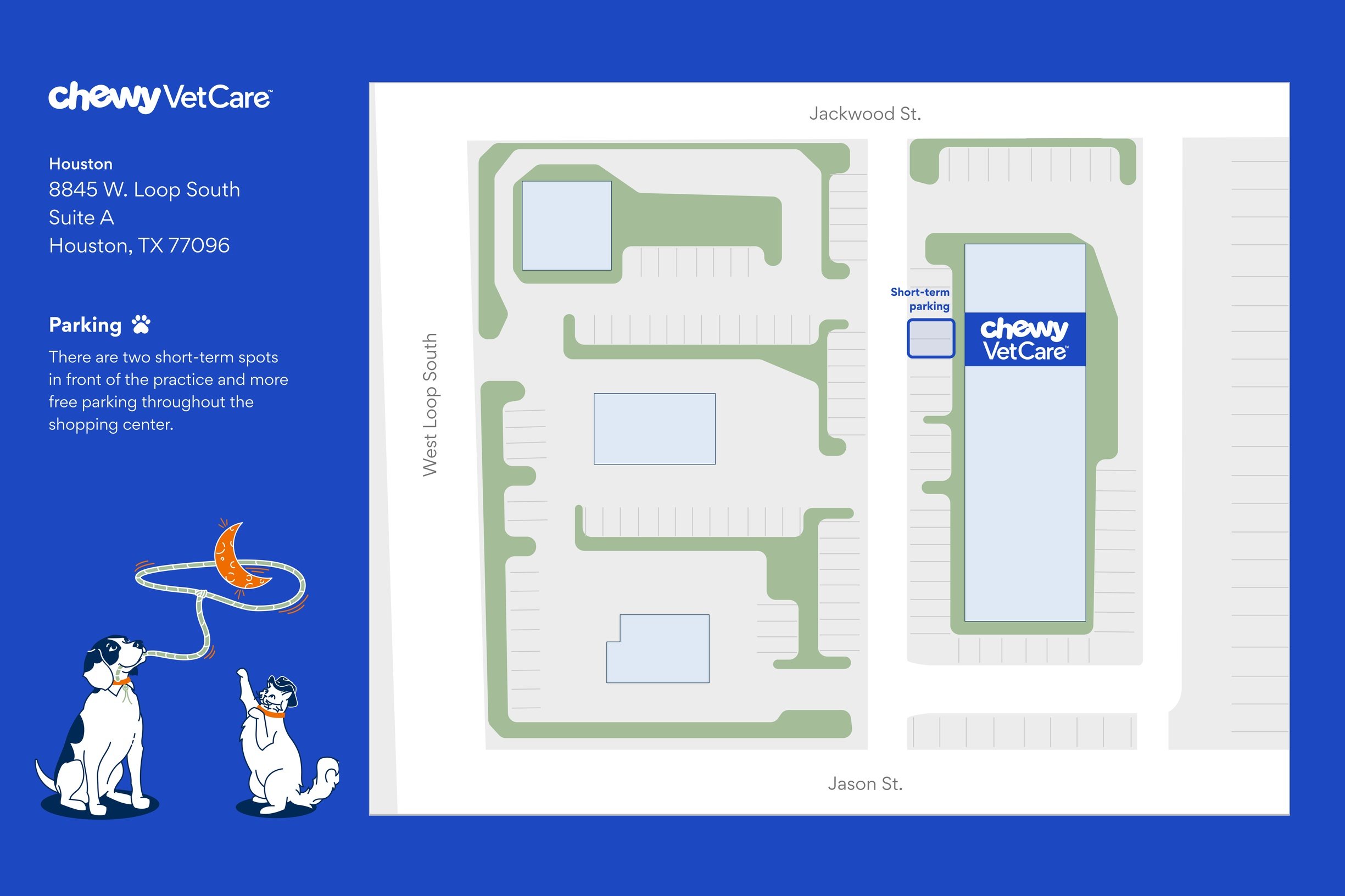There are two short-term spots in front of the practice and more free parking throughout the shopping center.