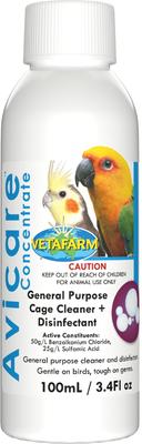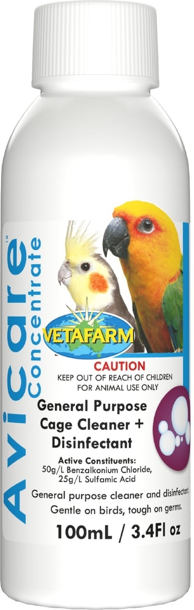 Vetafarm Avicare concentrated bird cage cleaner is a great product! I love the smell of it and it doesn’t harm my birds. The cage smells nice and clean after using