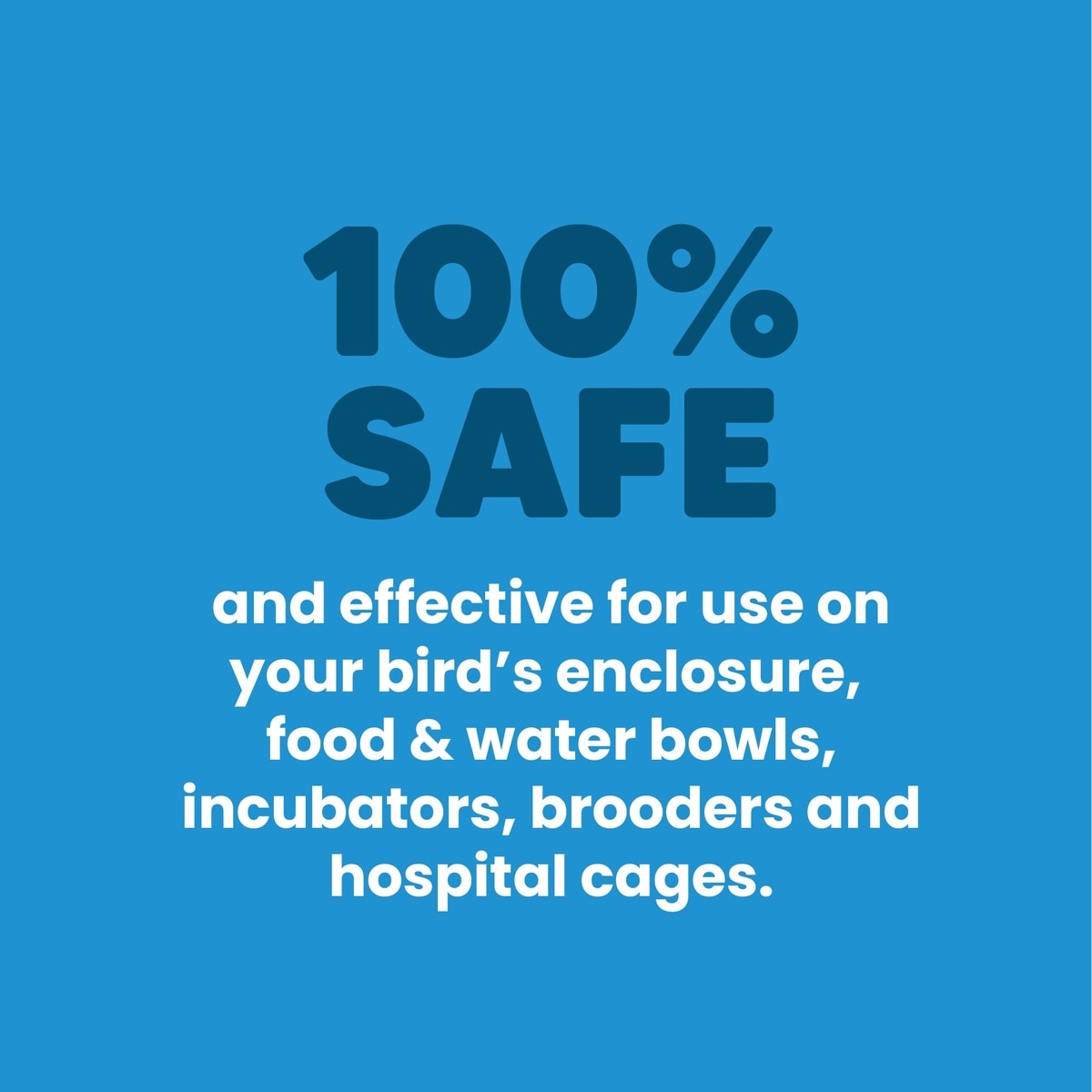 - Feel good knowing that this cleanser is safe for all birds, environments, and equipment.
