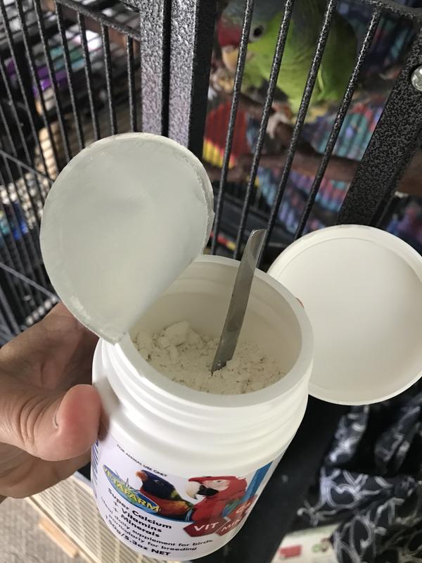 This Calcium plus vitamins and minerals comes in powder form as a daily supplement, sprinkled on top our Parrot, Max’s food. We have used it once a week for several weeks now. The only thing that would make this product better would be if it came with its own measuring device. Figuring out 5g isnt easy for me.