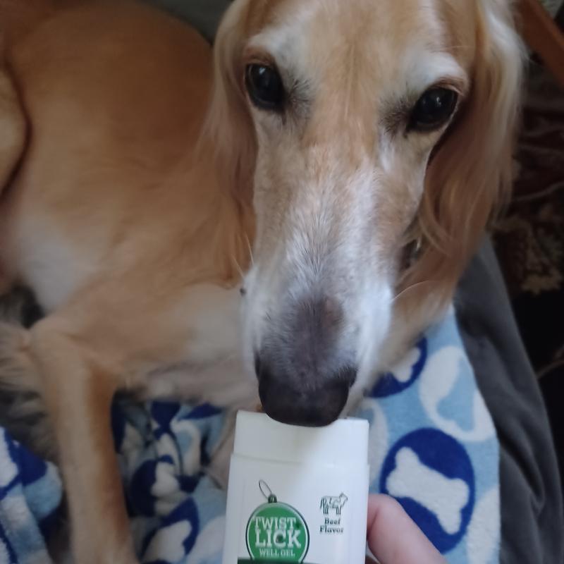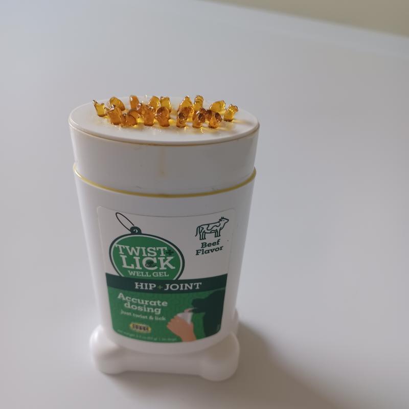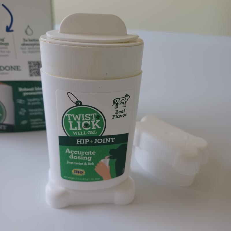 It really works—within 15 - 30 minutes, I saw a noticeable difference in my almost 12-year-old Saluki’s hips. He loves the taste, and the format makes it easy to lick and absorb. One hiccup: it didn’t dispense at first but turning it upside down fixed the issue. Impressed with the results. He is back to doing longer walkies with stronger hips!