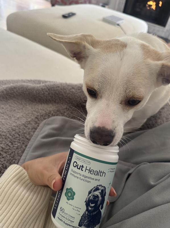 I’ve been giving my dog the Veterinary Formula Smart Vitality Gut Health Soft Chews for about two weeks, and they’ve been super easy to add into our routine. My