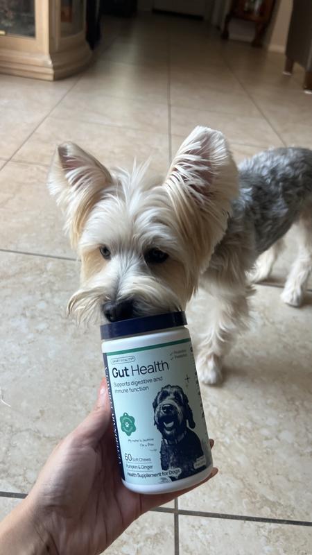 I’ve been giving the Smart Vitality Pork Flavor Gut Health soft chews to my dog, Odin, for two weeks, and he’s really taken to them! He thinks they’re treats, so