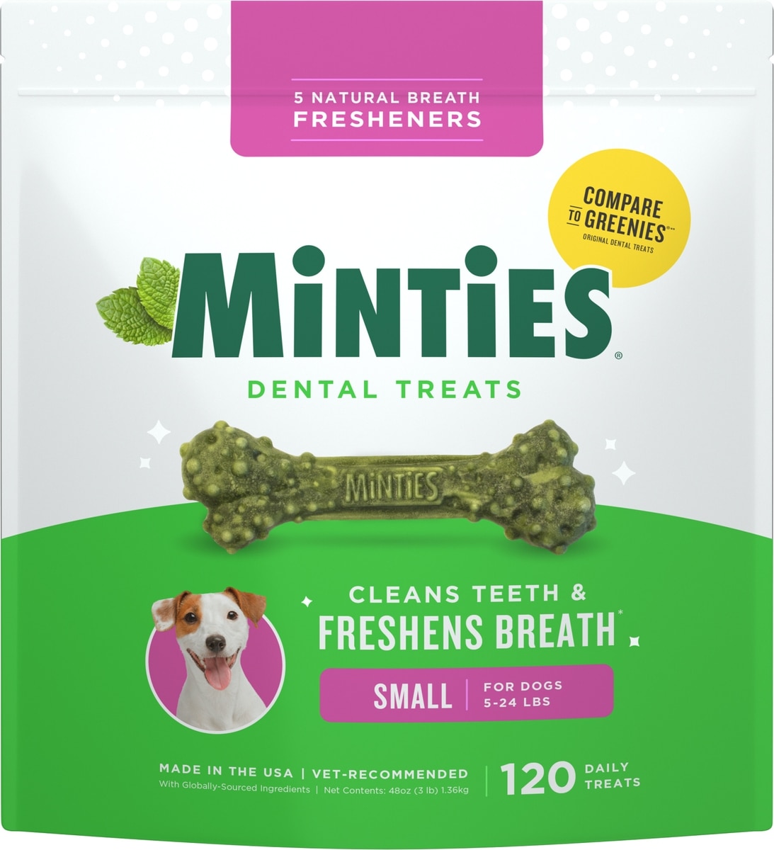 Minties Tiny/Small Mint Flavored Dental Treats for Dogs, 5-24 lbs, 48-oz, 120 count