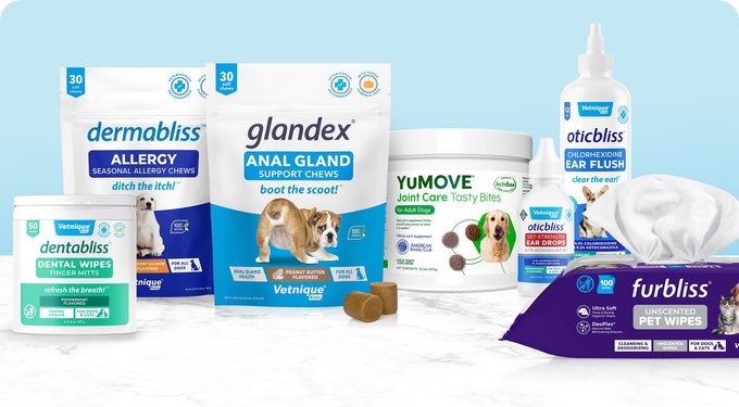 Vetnique offers a wide collection of uniquely vet-formulated and vet-recommended products that support nose-to-tail health in pets. They make a range of helpful solutions for pets, including Glandex, YuMOVE, Dermabliss, Dentabliss, and Furbliss.