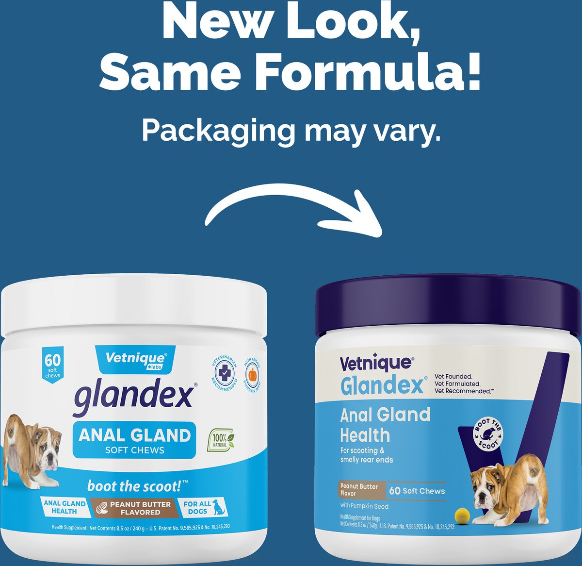 Vetnique Labs Glandex Dog Anal Gland Support Soft Chews with Pumpkin, Digestive Enzymes, Probiotics & Fiber Supplement Boot The Scoot Peanut Butter Flavored, 60 count