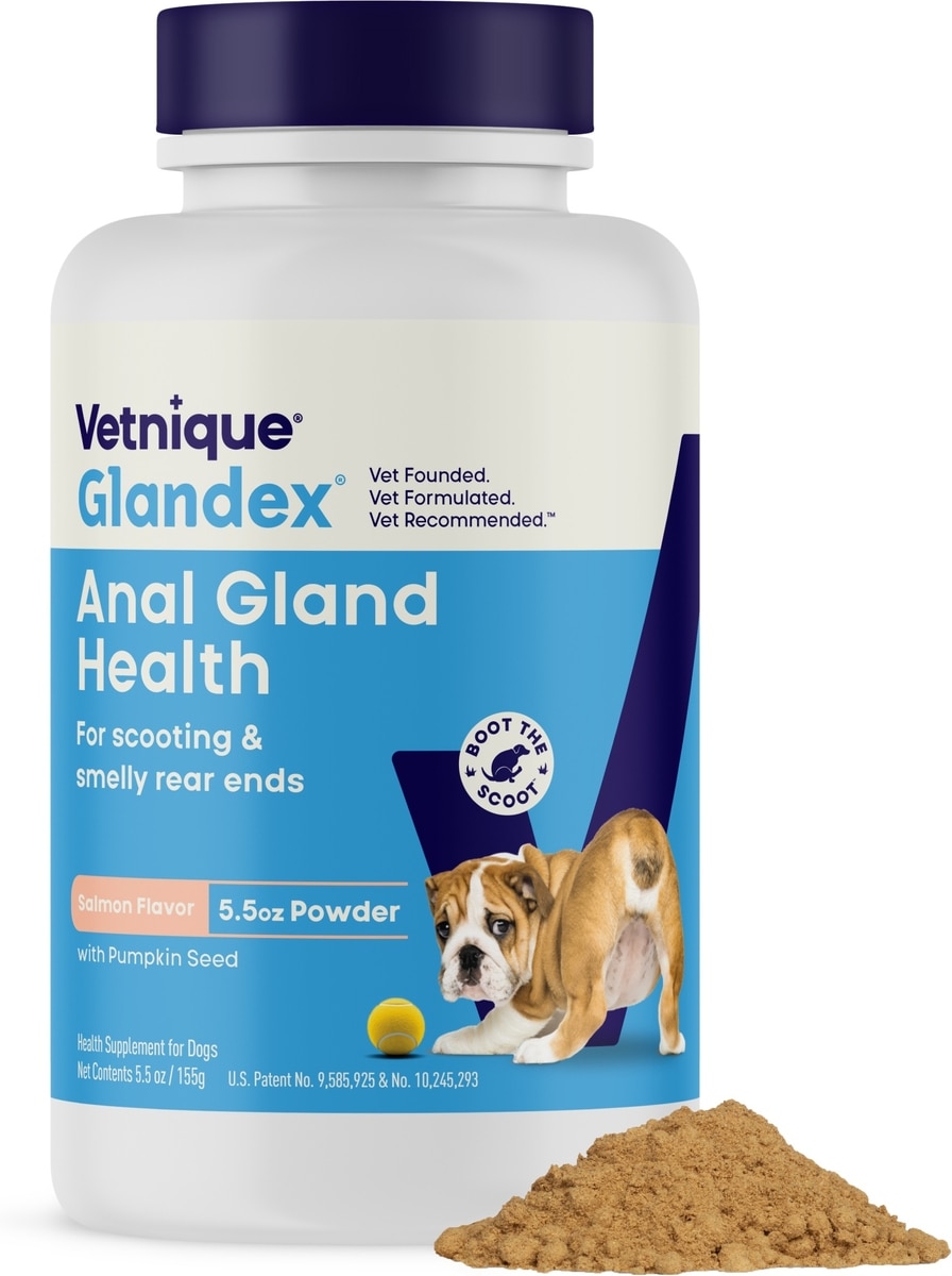 - DealVetnique Labs Glandex Anal Gland Support Supplement Powder with Beef Liver Flavor for Dogs & Cats, 5.5-oz bottle$39.99 Chewy Price$35.99 Autoship PricePromo, Spend $100, Get $30 eGift Card with code NEWYEAR +2 deals