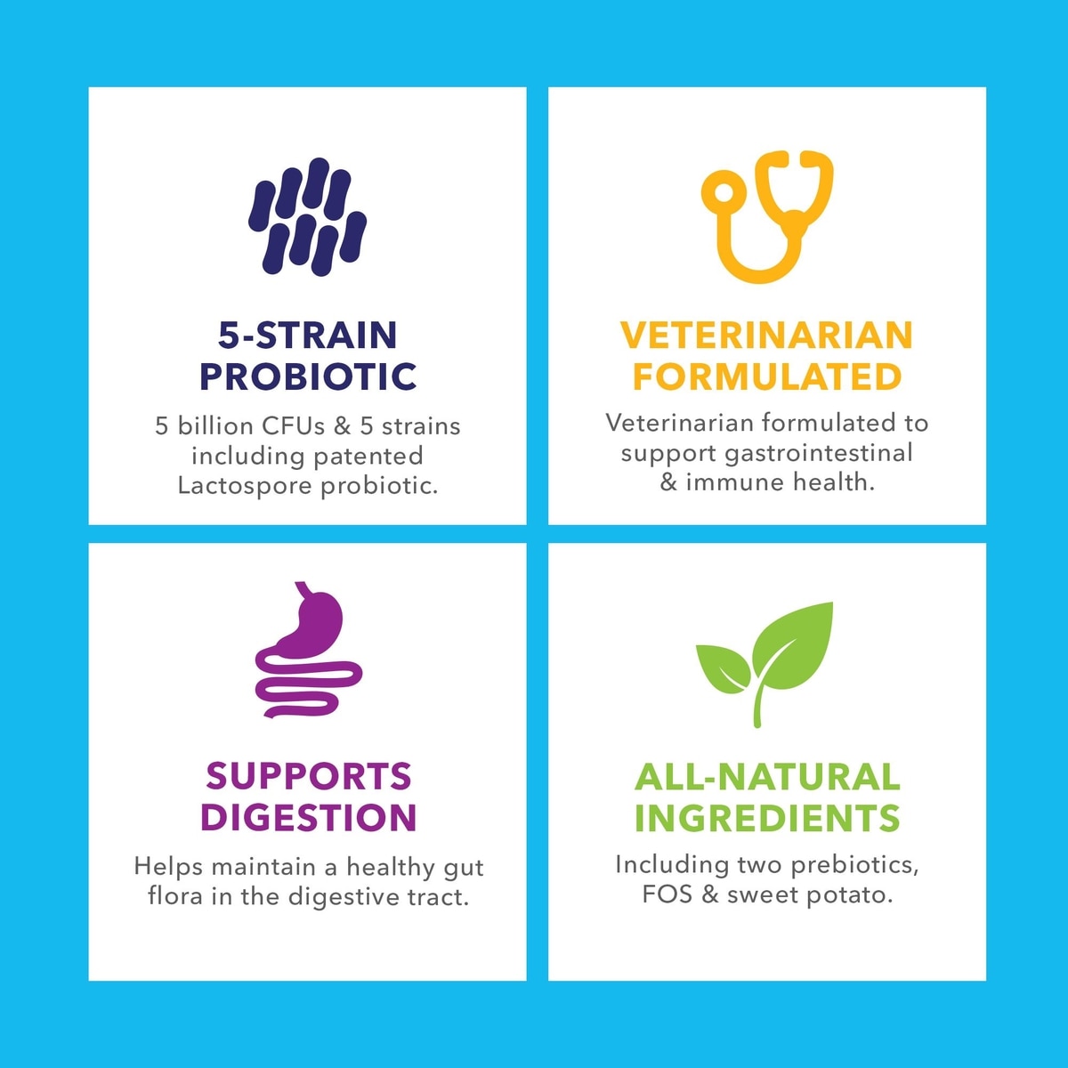 • Formulated with digestive enzymes and probiotics to promote digestive and immune system health.