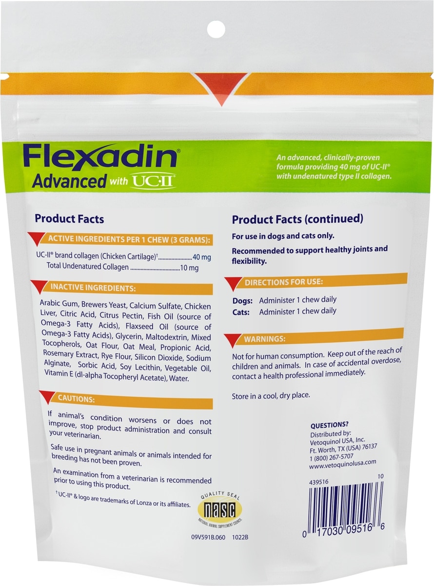 Vetoquinol Flexadin Advanced with UCII Collagen Soft Chews Joint Supplement for Dogs & Cats, 60 count