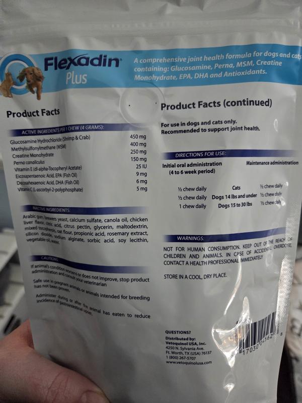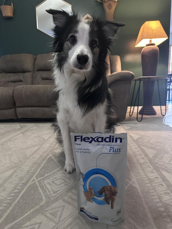 - Flexadin Plus Joints & Flexibility Chews are an easy way to ensure that your dog’s joints stay healthy through old age