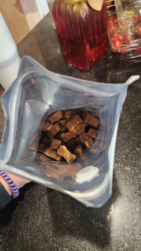 When i got these i was happy to see it was a resealable bag. Hamish has been taking them about 10 days now. He likes them and gets excited like they're treats. He's a senior dog with a bad hip so I'm looking for good things from him being on these.