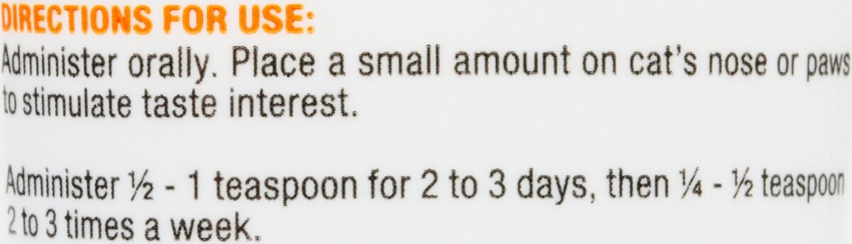- This palatable tuna flavored oral gel is easy to use. Just place a small amount on your pet’s nose or paws to stimulate taste interest.