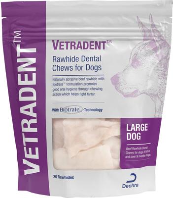 VETRADENT Rawhide Dental Chews for Large Dogs, 26-65 lbs, 30 count