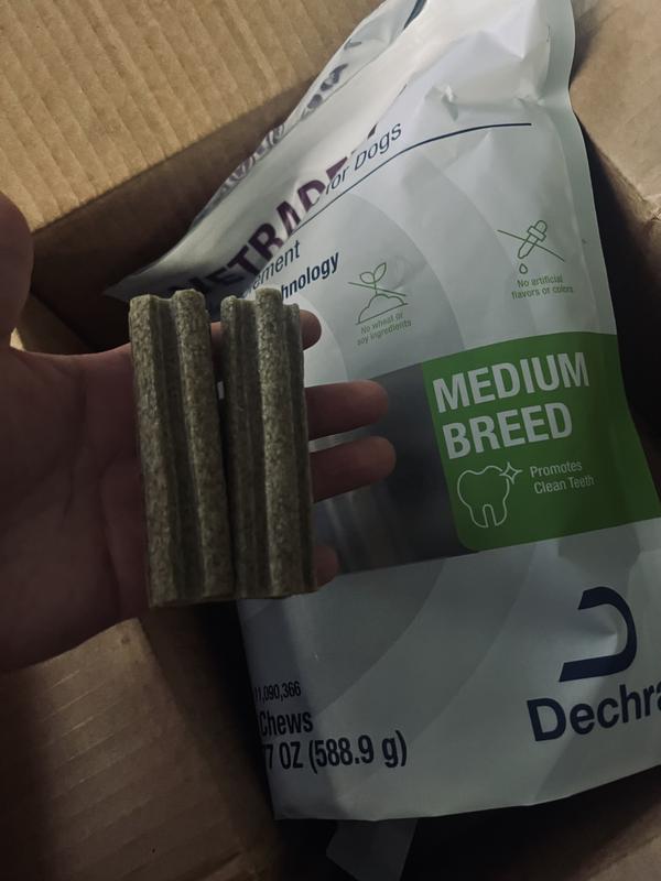 I have a Corgi that has dental plaque issues that needs attention so I tried Vetradent chews to see if they would help remove it. After using a bag I haven’t noticed very much of a difference. She tends to chew things quickly so probably wasn’t doing enough gnawing action to accomplish removal. It’s a little pricey so if takes several bags to do it I’m not sure if I’ll buy it again.