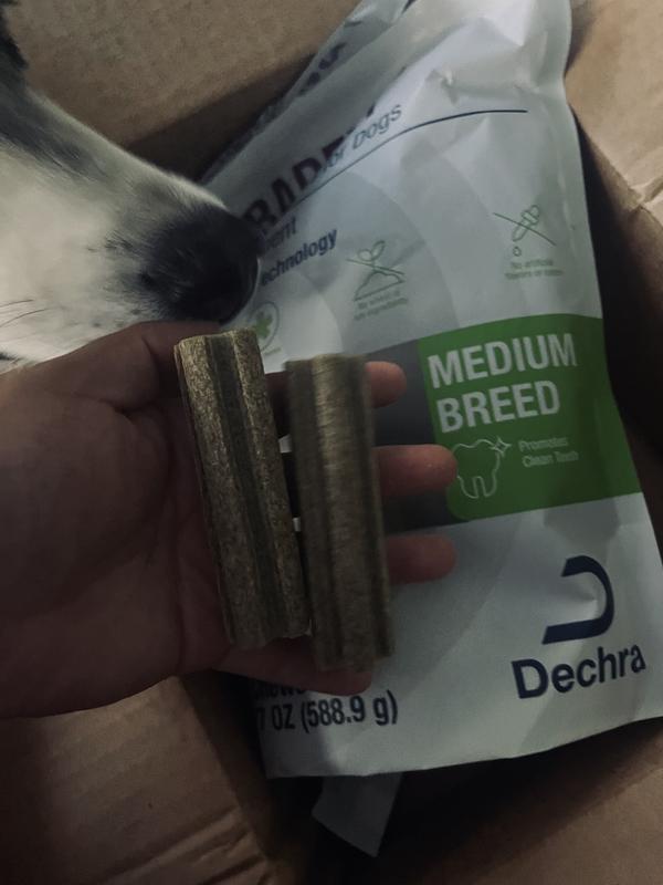 My dogs love these. I don’t know how much good they do their teeth because despite the varying size of my dogs from 25 pounds to 80 pounds, they devour these chews