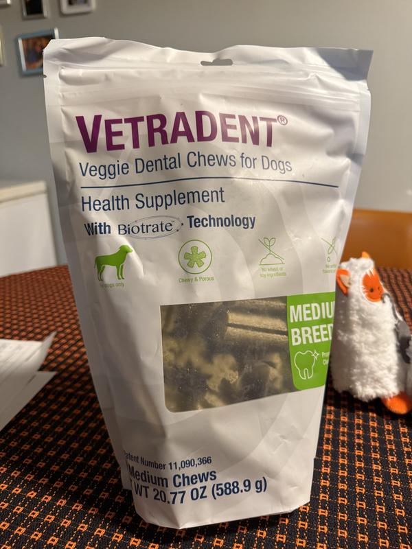 VETRADENT Veggie Medium Adult Dog Dental Chew Treats, 30 count
