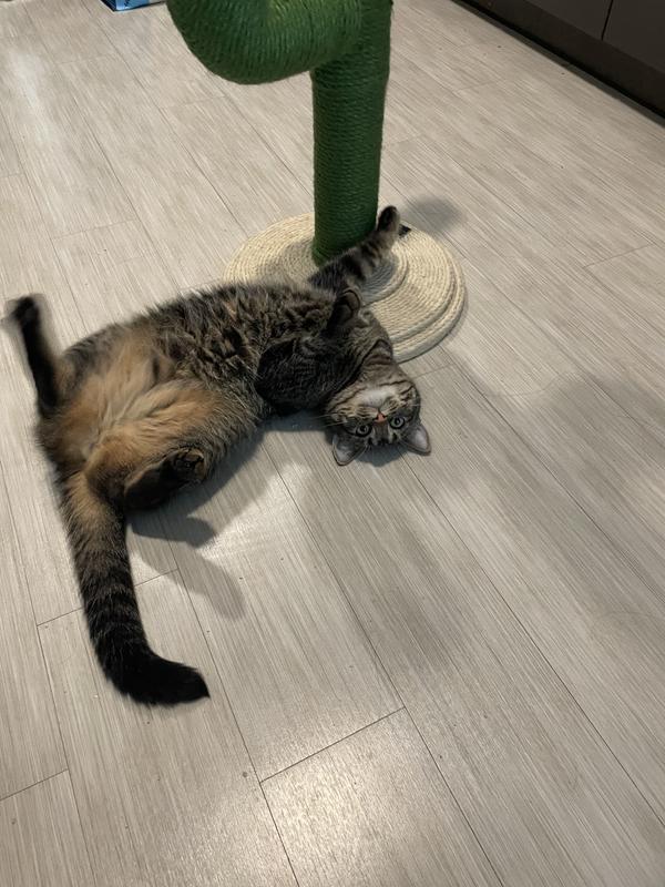 I had this cactus tree for 3 months and it’s already shredded up and leaving green fibers from the scratcher all over my apartment. At first I kept seeing what I thought was green hairs all over and then I realized it was coming from the cactus scratcher. I have cat wall scratchers all over the walls, I have 5 cat trees, and tons of cardboard scratchers all throughout my apartment and some items I’ve had for many years and those scratching posts still look new. This $90 cactus scratcher is supposed to be high end. It looks great and fancy but the material is definitely cheap and does not last long. For the price, it’s definitely not worth it.