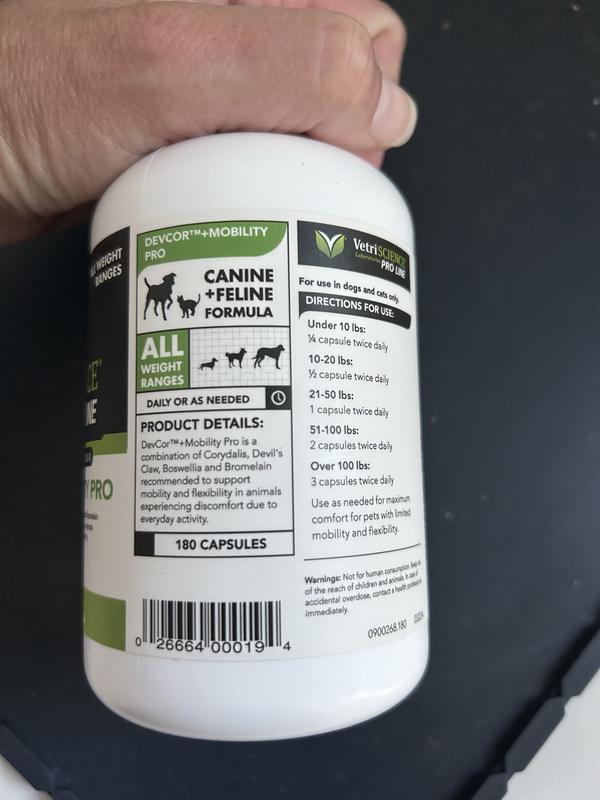 VetriScience Veterinary Strength Comfort & Ease DevCor Mobility Pro Capsule Joint Supplement for Dogs & Cats, 180 count