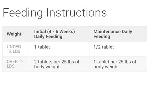 When starting this supplement, it's recommended to follow the initial daily feeding dose then move onto maintenance daily feeding dose. Please refer to the feeding chart below for daily amounts based on your dog's weight.
