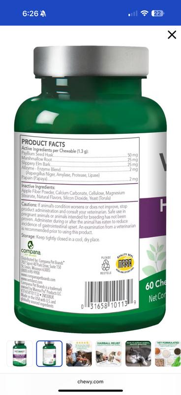 HAIRBALL RELIEF DIGESTIVE AIDS: These tasty, chicken-flavored chewable digestive aids also contain an abundance of natural ingredients like slippery elm bark, marshmallow and papaya extract, an excellent source of vitamin A and E to effectively remedy hairballs. They're also easy to break up into smaller pieces for even easier digestion.
