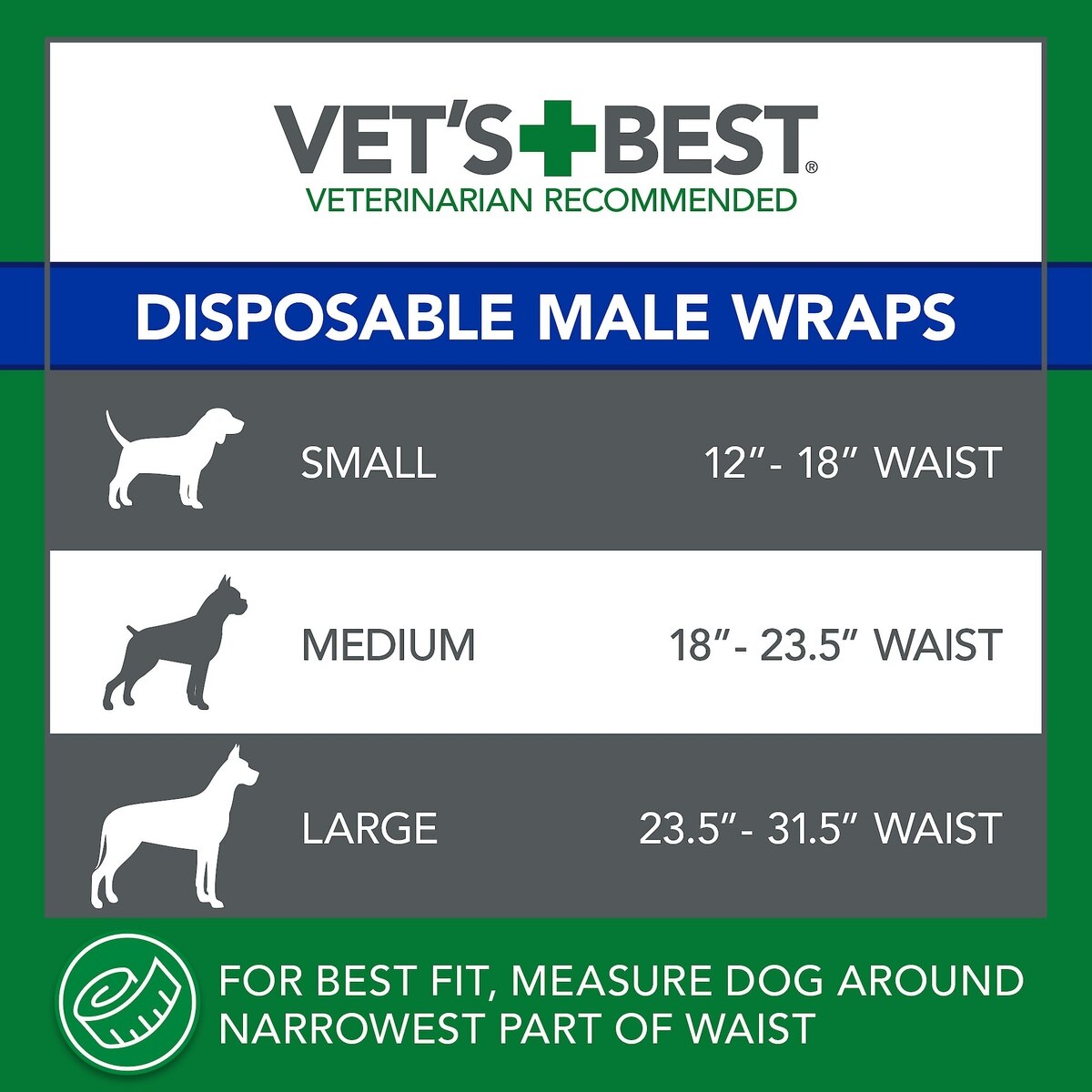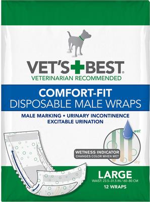 Vet's Best Comfort-Fit Disposable Male Dog Wraps, Large: 23.5 to 31.5-in waist, 12 count