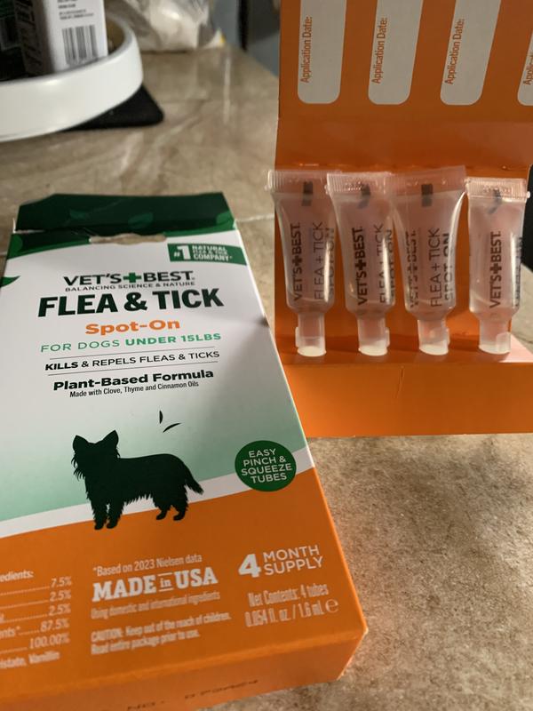 Vet's Best Flea & Tick Spot Natural Treatment for Dogs, Under 15 lbs, 4 Doses (4-mos. supply)