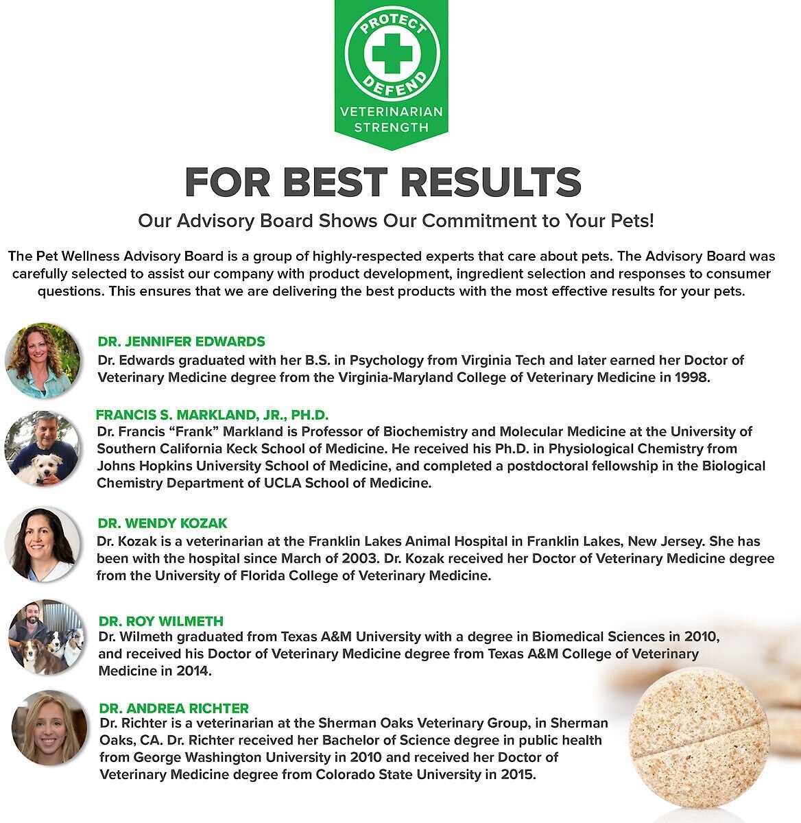 Veterinarians typically sell products that are stronger and more effective than what you might find in a retail pet store. The products are better formulated, and they contain more of the powerful “active ingredients” that are so helpful in delivering the benefits to your pets. Vetsmart Formulas products are specifically developed for Veterinarians and we are proud to call them “Veterinary Strength.” Our products meet the most demanding standards required by veterinarians and we conveniently deliver these products directly to you. Our products are not available in retail stores. They are made in the U.S.A., they contain no artificial colors or fillers, and are wheat and gluten-free.