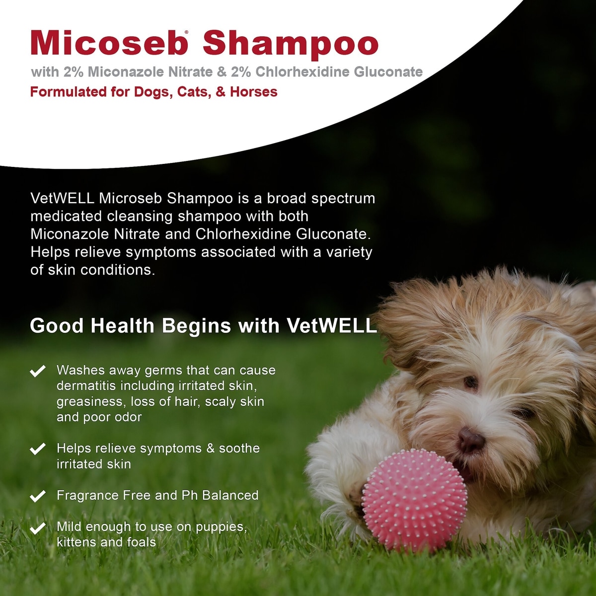 VetWELL Micoseb with Miconazole, Chlorhexidine & Aloe for Skin Infection Treatment & Conditions Medicated Dog & Cat Shampoo, 12-oz