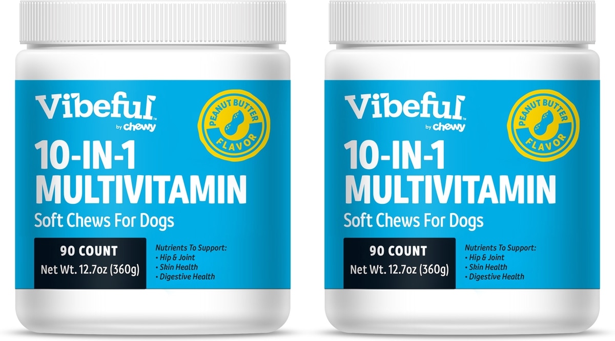 - DealVibeful 10-in-1 Multivitamin Bites Chicken Flavored Soft Chews Supplement for Dogs, 90-CountBy$19.99 Chewy Price$18.99 Autoship PricePromo, Spend $100, Get $30 eGift Card with code NEWYEAR +2 deals