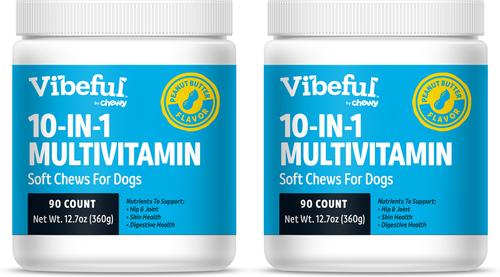 Vibeful 10-in-1 Multivitamin Bites Peanut Butter Flavored Soft Chews Supplement for Dogs, 90 count, bundle of 2