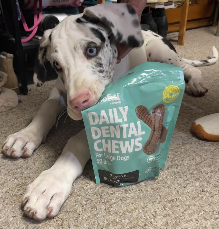 - DealVibeful Large Daily Dental Chews for Dogs, Cinnamon Flavor, 30 countBy$42.99 Chewy Price$40.84 Autoship PricePromo, Spend $100, Get $30 eGift Card with code NEWYEAR +2 deals