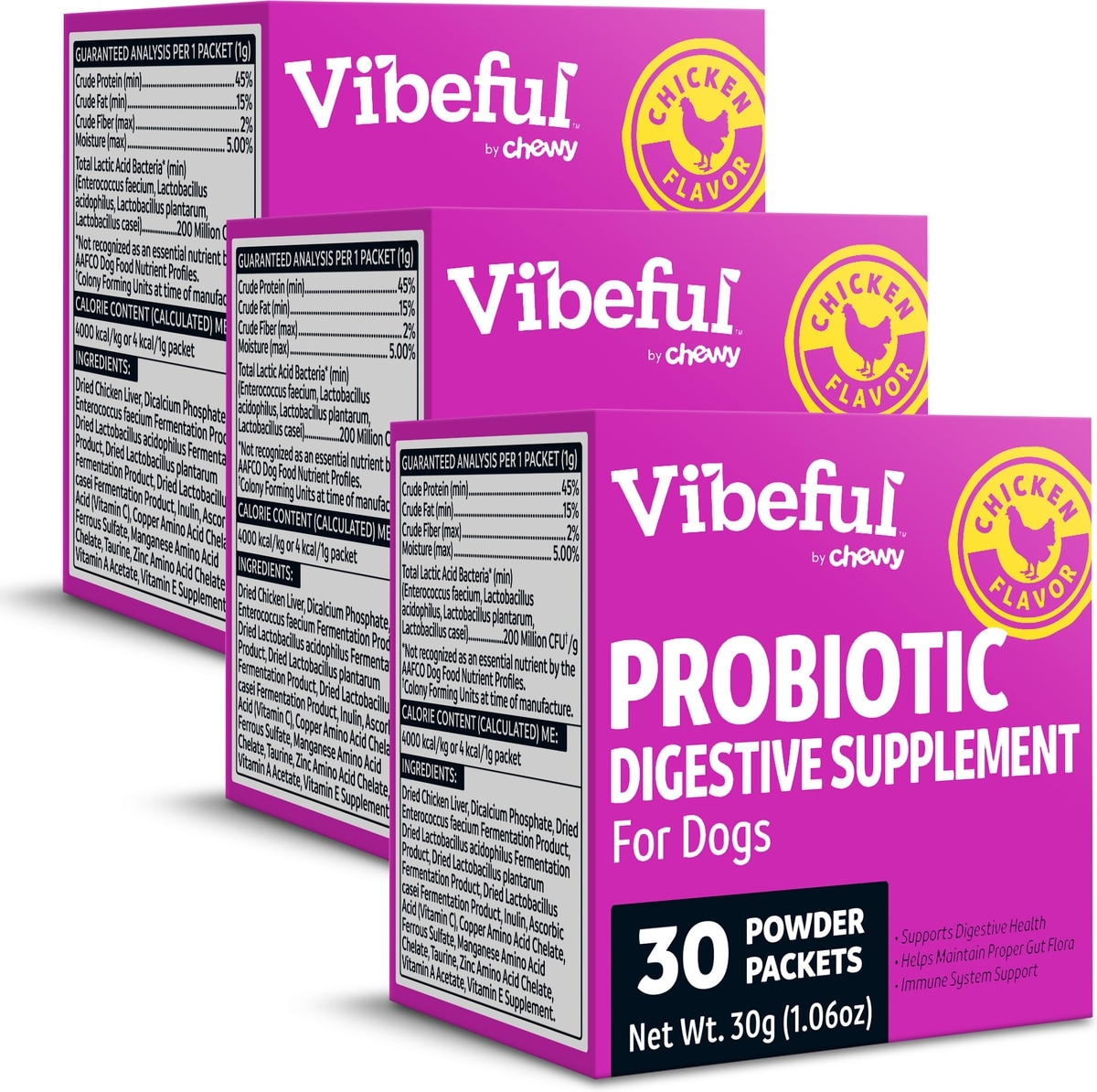 Vibeful Probiotic Gastrointestinal Support Powder Digestive Supplement for Dogs, 30 count, bundle of 3