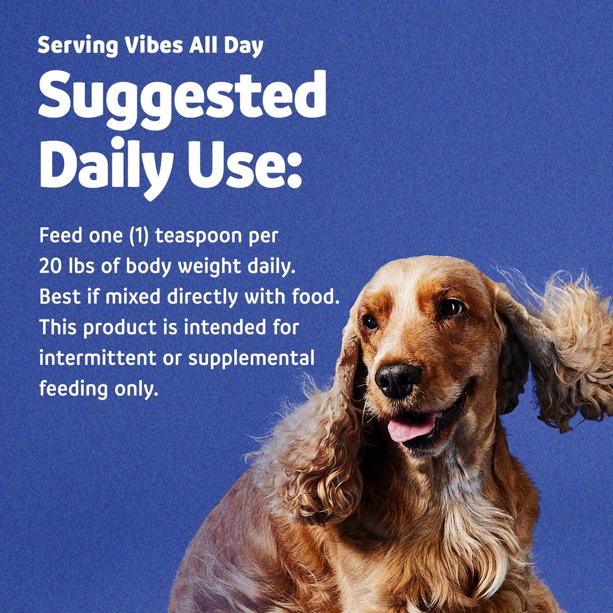 Feed one (1) teaspoon per 20 lbs of body weight daily. Best if mixed directly with food. This product is intended for intermittent or supplemental feeding only. Shake well before each use.