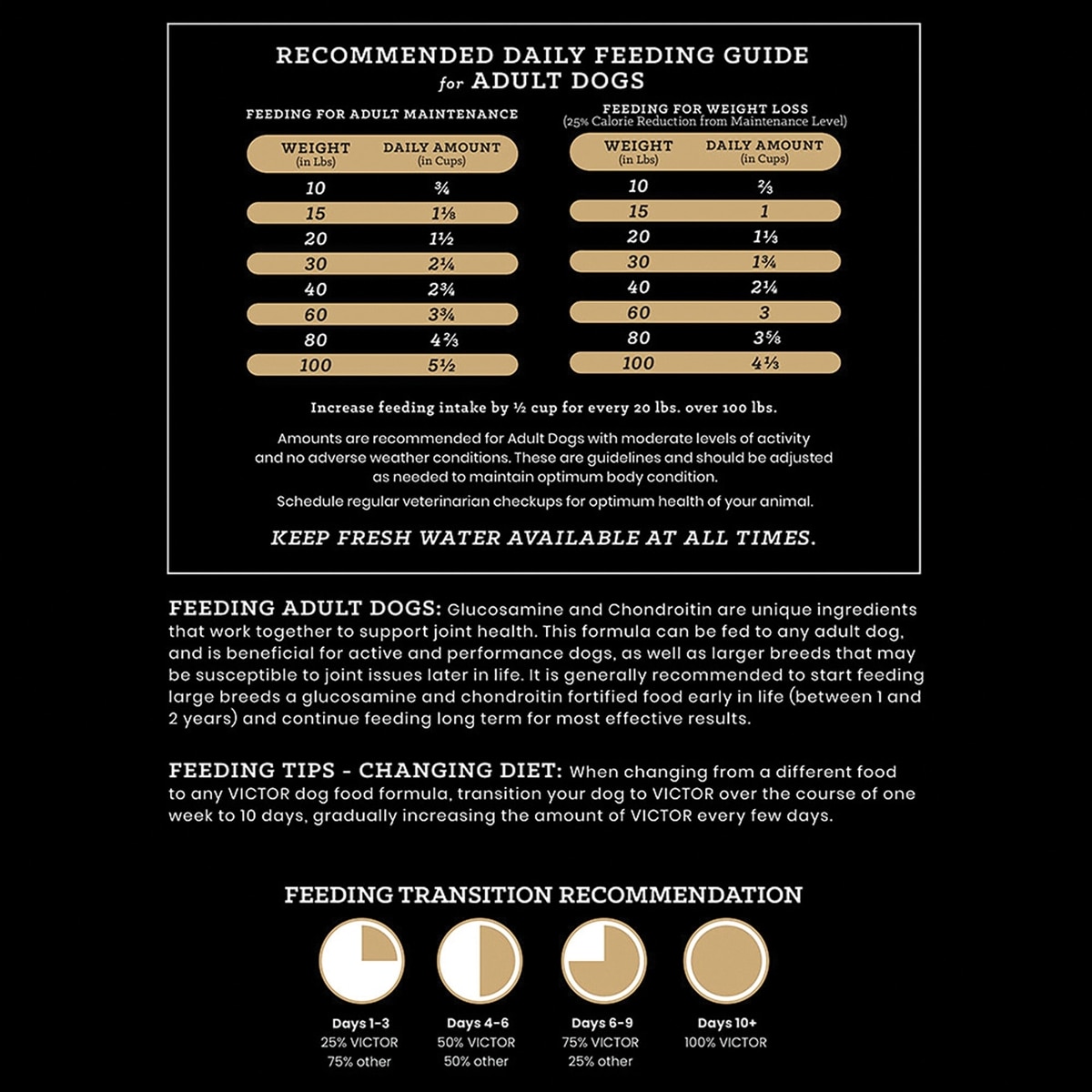 VICTOR works hard to create super premium pet nutrition that’s backed by science and designed to foster health. Every ingredient serves a nutritional purpose and reflects high-quality standards, so you can feel good about what you’re feeding your loyal companion.