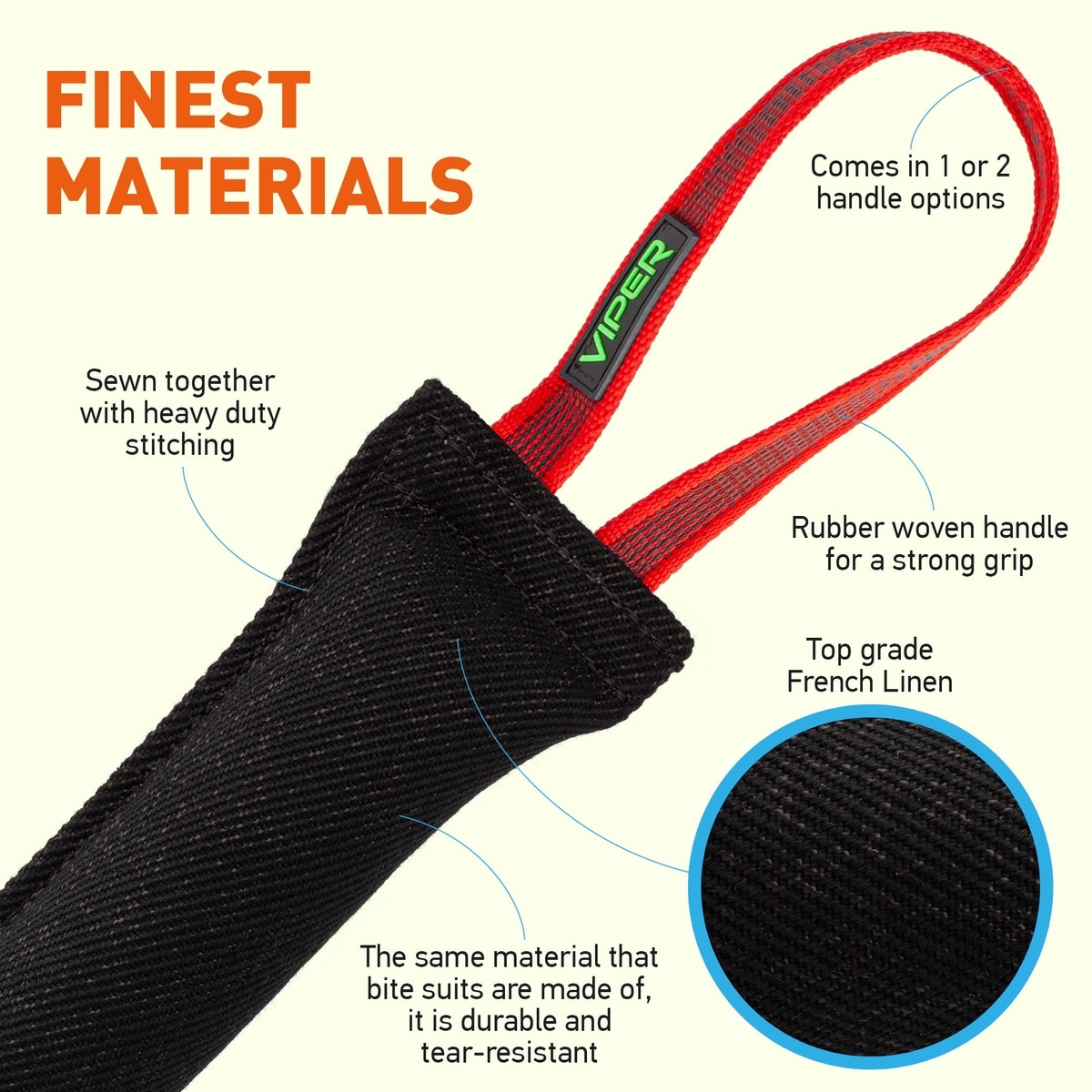 Viper French Linen Tug Dog Toy, Black, 12-in