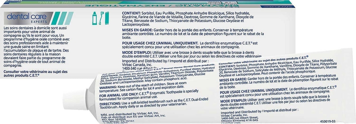 Bundle: Virbac C.E.T. Pet Toothbrush, Color Varies & Virbac C.E.T. Enzymatic Dog & Cat Vanilla-Mint Flavor Toothpaste, 70 gram