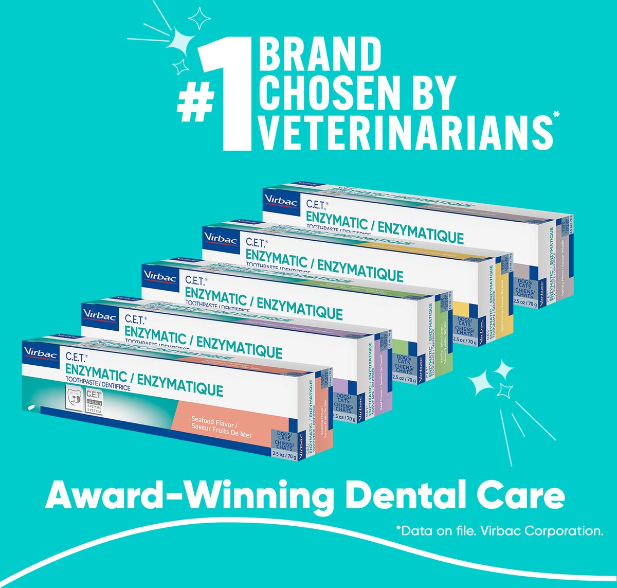 - DealVirbac C.E.T. Enzymatic Seafood Flavor Dog & Cat Toothpaste, 70 gram$11.89 Chewy Price$13.59 List Price$11.30 Autoship PricePromo, New Customers Only: Spend $49+, Get $20 eGift Card +2 deals