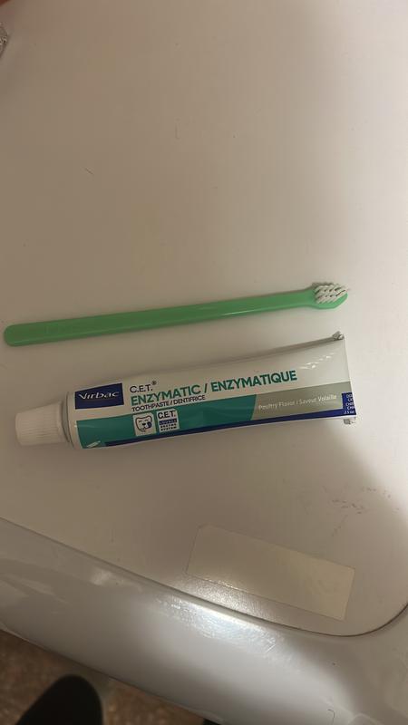 Bundle: Virbac C.E.T. Enzymatic Dog & Cat Poultry Flavor Toothpaste, 70 gram & Virbac C.E.T. Pet Toothbrush, Color Varies